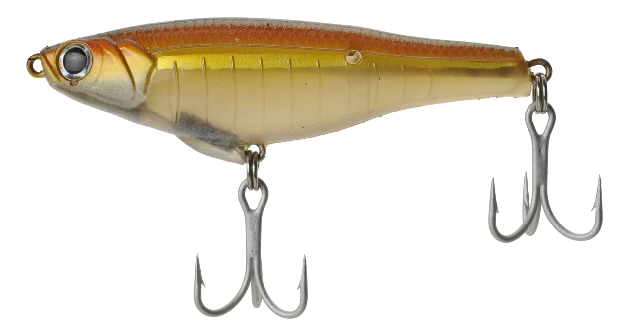 The ultimate finese and power fishing long distance twitchbait!! The fat body and weighted tail is balanced to optimize casts and accuracy. This allows you to reach far away finicky fish out of reach with similar lures. The rounded shape pitches and rolls with a twitch-twitch-pause action, great for walking the dog and short jerks.