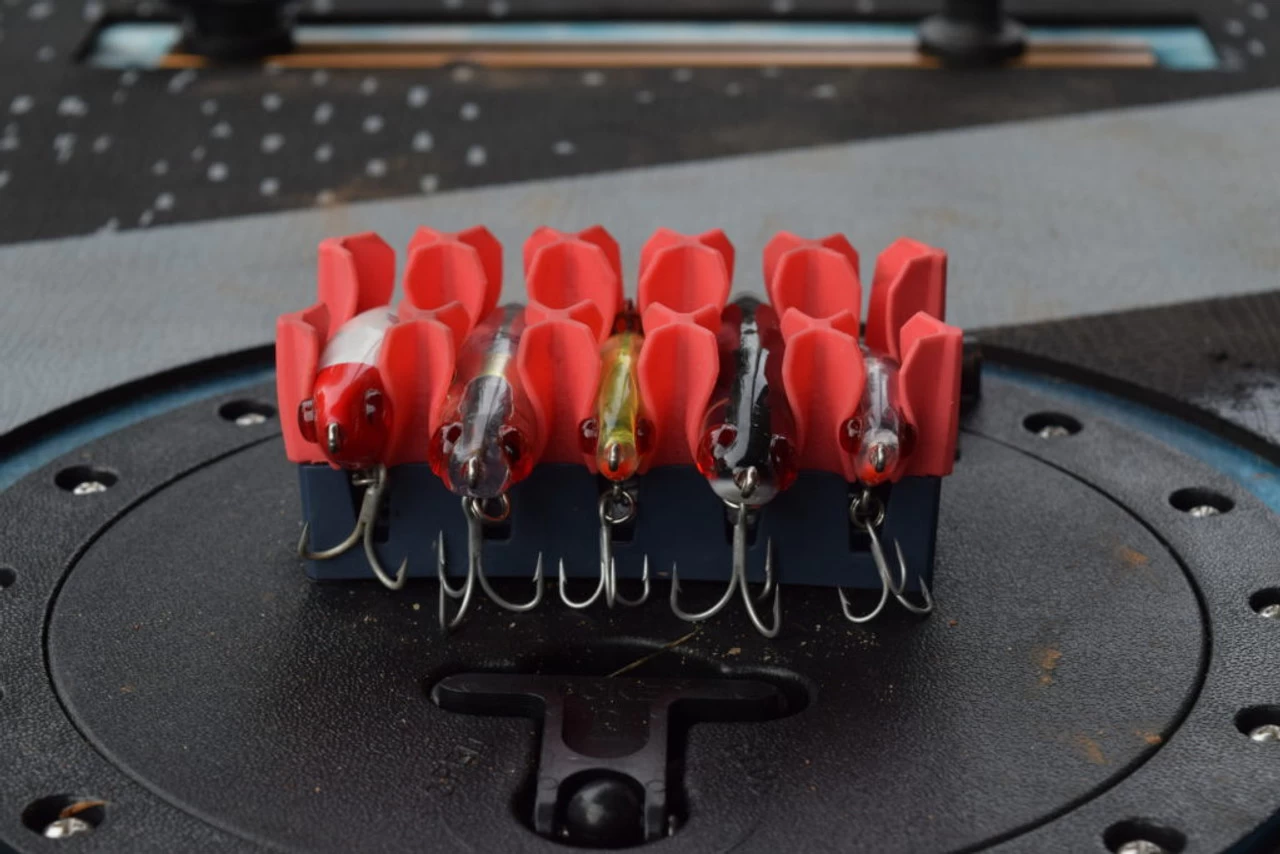 The Hard Bait Launch Pad offers the innovative storage system of the Hard Bait Box in a modular format. We’ve all been on the boat and swapped out a lure only to end up throwing it in the cup holder or even the floor. We’ve all experienced that these two places are not the ideal storage spot for lures or baits. The Hard Bait Launch Pad with the 3M adhesive allows you to adhere the Launch Pad to nearly any hard surface, allowing to to have access to your lures wherever you need them.