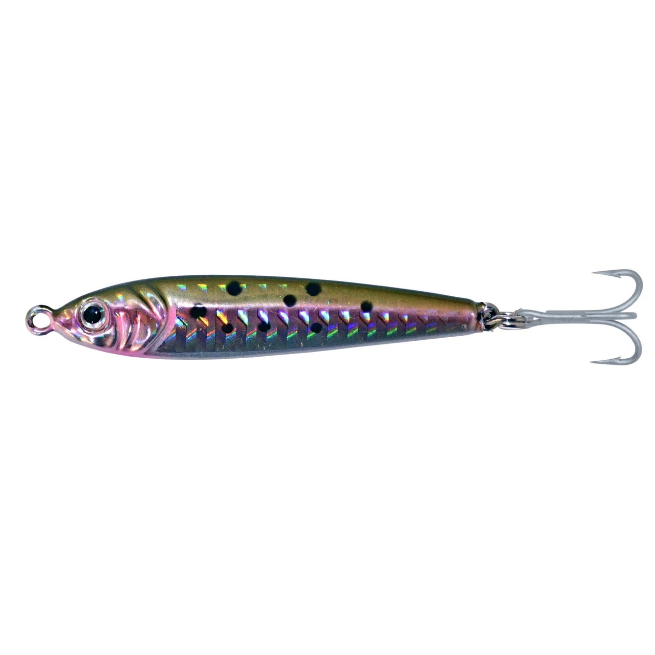 We let nature do the designing on our new Peanut Bunker Jig. These tiny jigs are perfect imitators of baby bunker. It’s flat sided body shape offers a seductive side to side wobble on a steady surface retrieve, great for targeting finicky Albies. When fish go deep, the Baby Bunker Jig offers an excellent flutter fished on a drop slack jigging retrieve.
