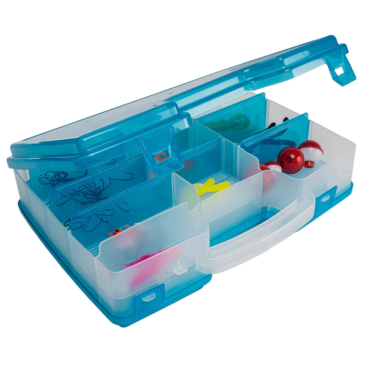 The newest addition to the Let’s Fish line, this double-sided case features modern, bright colors. The included 70-piece tackle kit is easily visible through the clear lids for easy, fast access. Great for young anglers!